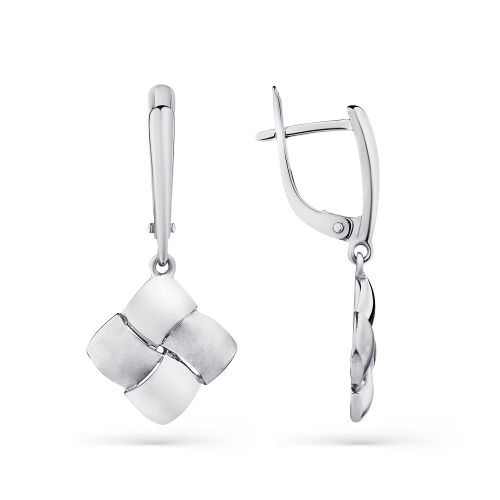 Стильные серьги с подвесом, выполнены из белого золота 585 пробы