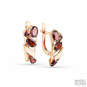 Серьги выполнены из красного золота 585 пробы, украшены россыпью гранатов различной формы огранки. Тип замка - английский, самый надежный и удобный.