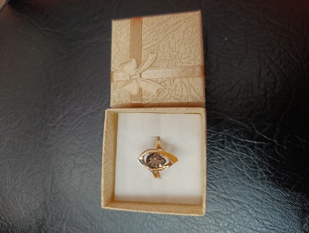 Кольцо оригинального дизайна с дымчато-коричневым раух-топазом, выполнено из красного золота 585 пробы