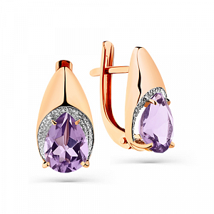 Серьги с аметистами выполнены с сочетанием красного и белого золота 585 пробы