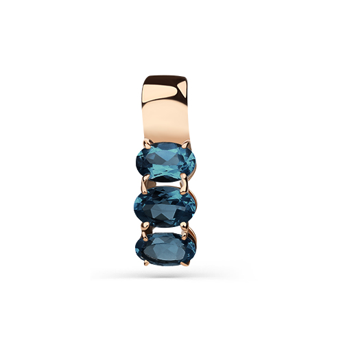 Элегантная подвеска выполнена из красного золота 585 пробы и украшена дорожкой из трёх сверкающих Лондон топазов синего цвета