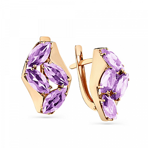 Роскошные серьги с сочетанием красного золота 585 пробы и сверкающих аметистов