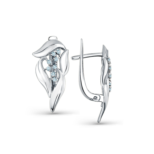 Нежные серьги в флористическом стиле выполнены из белого золота 585 пробы, украшены россыпью искрящихся фианитов
