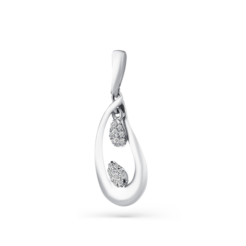 Подвеска с оригинальным фантазийным дизайном выполнена из белого золота 585 пробы, украшена россыпью фианитов