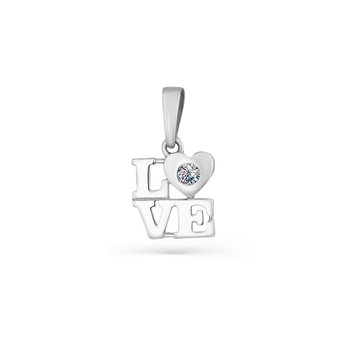 Нежная и романтичная подвеска с надписью "LOVE", украшенной фианитом, выполнена из белого золота 585 пробы
