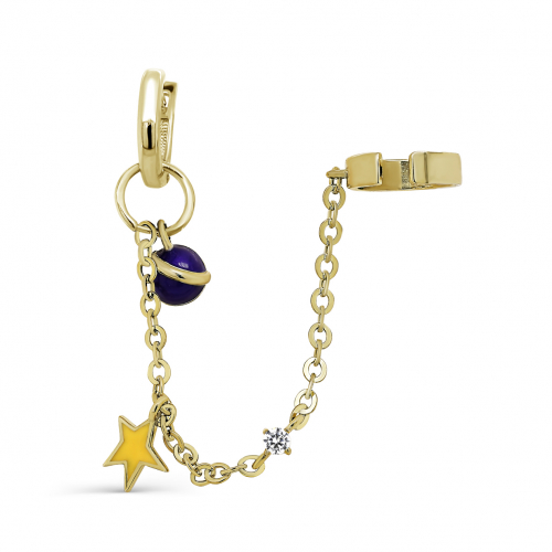 Стильная серьга, выполнена из серебра 925 пробы с родиевым покрытием, украшена золочением, холодной эмалью и искрящимся фианитом.