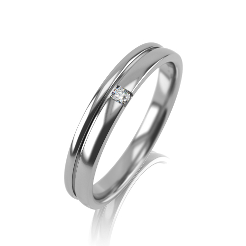 Обручальное кольцо из белого золота 585 пробы, украшенное бриллиантом.