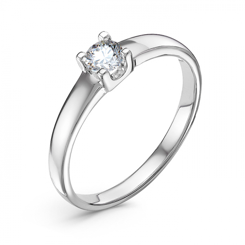 Кольцо классического дизайна из белого золота 585 пробы, украшено искрящимся бриллиантом