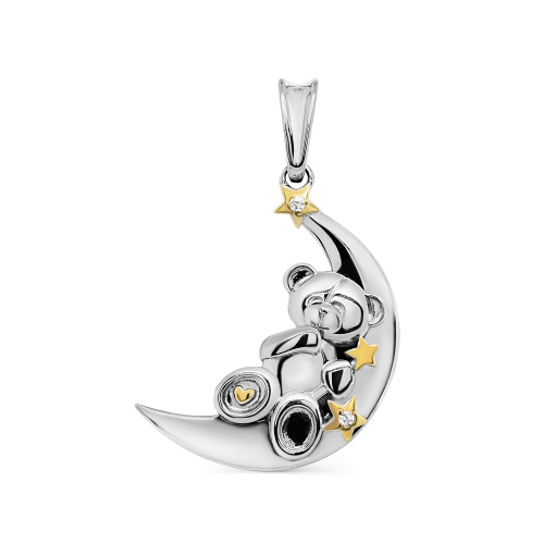 Подвеска выполнена из серебра 925 пробы с родиевым покрытием. Родий - драгоценный металл платиновой группы, который делает серебро устойчивым к повреждениям, не вызывает аллергии, не темнеет и дарит искрящийся блеск. Изделие украшено золочением и искрящимися фианитами.