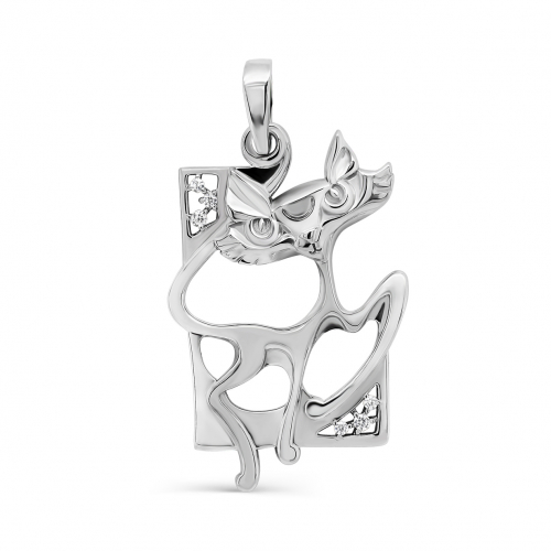 Ажурная подвеска с изображением кошки выполнена в серебре 925 пробы и украшена фианитами