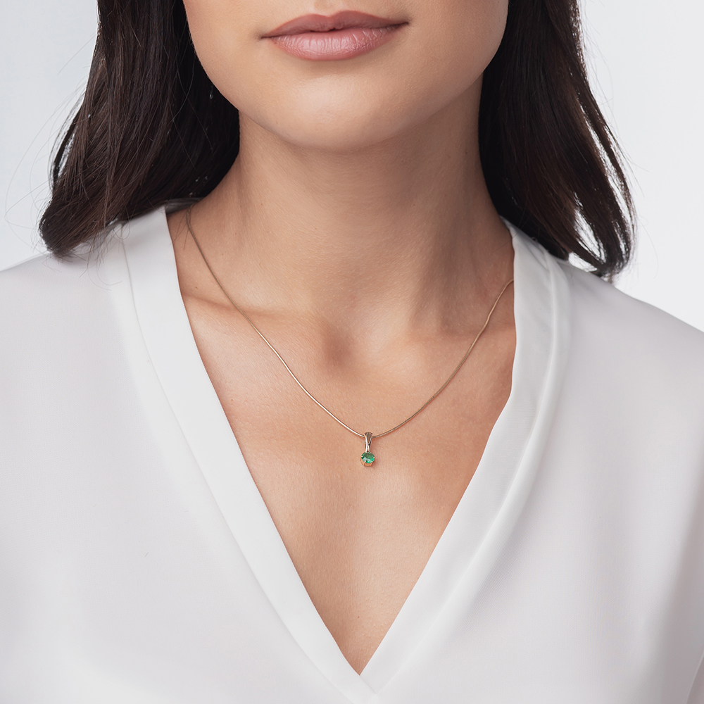 Лаконичная и стильная подвеска выполнена из жёлтого золота 585 пробы с изумрудом
