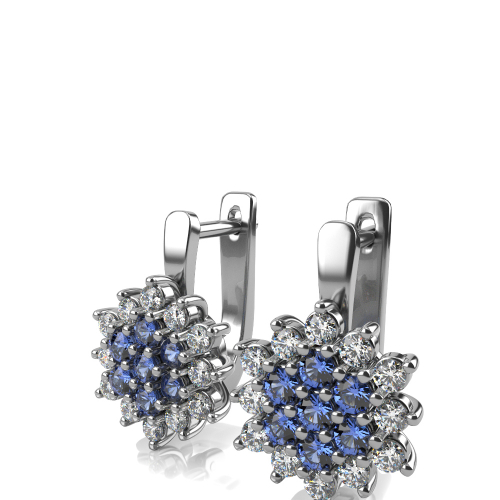 Роскошные серьги из белого золота 585 пробы с натуральными сапфирами и бриллиантами.