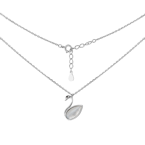 Изящное цепочное колье с подвеской в виде лебедя, выполнено в серебре 925 пробы, покрыто родием