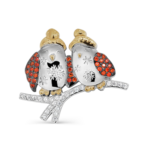 Интересная брошь в анималистическом стиле из коллекции "НОВОГОДНИЕ ИГРУШКИ" выполнена из серебра 925 пробы, украшена россыпью цветных фианитов