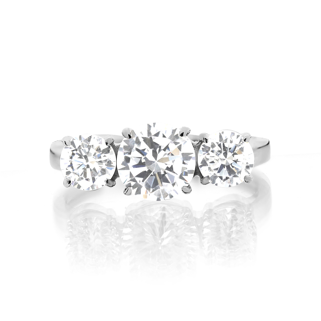 Кольцо, украшенное тремя сверкающими фианитами, выполнено из серебра 925 пробы. Надежные крапановые закрепки пропускают свет со всех сторон, тем самым полностью раскрывая блеск и красоту камней.