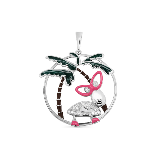 Яркая подвеска из коллекции " Шарлотта" выполнена из серебра 925 пробы с родиевым покрытием, которое делает серебро устойчивым к повреждениям, не вызывает аллергии, не темнеет и дарит искрящийся блеск. Украшена холодной эмалью и россыпью сверкающих фианитов. Изделие представлено брендом "Кабаровски". Средняя характеристика камней на артикул: 7 Фианит Кр 1,00; 22 Фианит Кр 1,25; холодная эмаль. В комплект поставки входит: