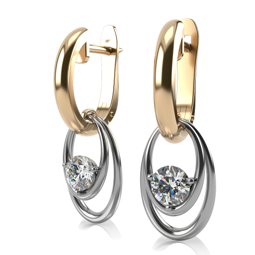 Основа серег выполнена в желтом золоте, а подвесная часть - в белом.