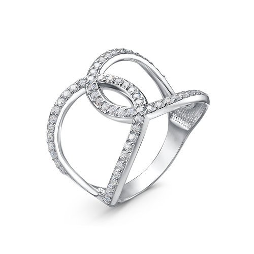 Ажурное широкое кольцо выполнено из серебра 925 пробы с родиевым покрытием, украшено россыпью сверкающих фианитов