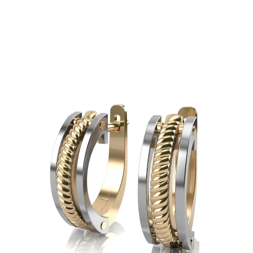 Стильные обьемные серьги, выполненные в сочетании белого и желтого золота 585 пробы