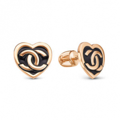 Стильные серьги-пусеты в форме сердца, выполнены из красного золота 585 пробы, украшены ювелирной эмалью черного цвета