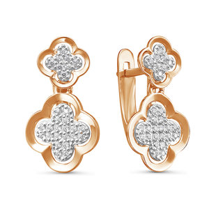 Стильные серьги выполнены в сочетании красного и белого золота 585 пробы в анималистичном стиле, украшенные сияющей россыпью фианитов. Это украшение выглядит необыкновенно изящно и ослепляет своим завораживающим блеском.Тип замка - английский, самый надежный и удобный. Изделие представлено брендом "DEL`TA" коллекция "Violet". Средняя характеристика камней на артикул: 56 Фианит. В комплект поставки входит: