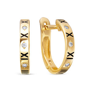 Оригинальные серьги в форме полукольца с фианитами и черной эмалью выполнены из желтого золота 585 пробы