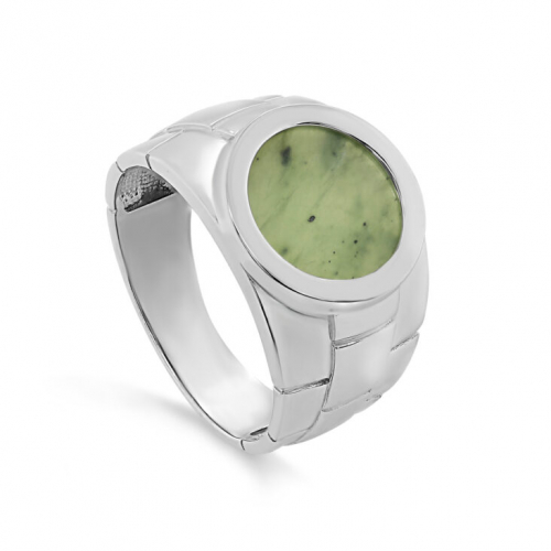 Стильное мужское кольцо с натуральным нефритом, выполнено из родированного серебра 925 пробы. Украшения с натуральными поделочными камнями по праву считаются одними из самых необычных и оригинальных. Натуральный поделочный камень с оригинальным узором, созданный самой природой, несомненно, станет центром внимания в вашем образе. Изделие представлено брендом KABAROVSKY. Средняя характеристика камней на артикул: 1 Нефрит Площадка круг 12,00. В комплект поставки входит: