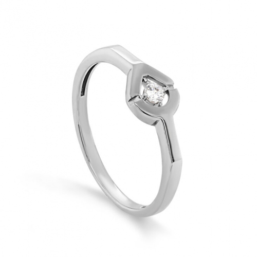 Нежное кольцо с сверкающим фианитом выполнено из родированного серебра 925 пробы