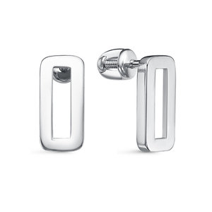 Оригинальные объемные серьги - пусеты без камней выполнены из родированного серебра 925 пробы