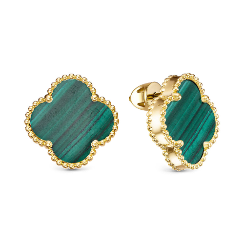 Серьги-пусеты из желтого золота 585 пробы в виде цветка с зеленым малахитом - это прекрасное сочетание элегантности и стиля