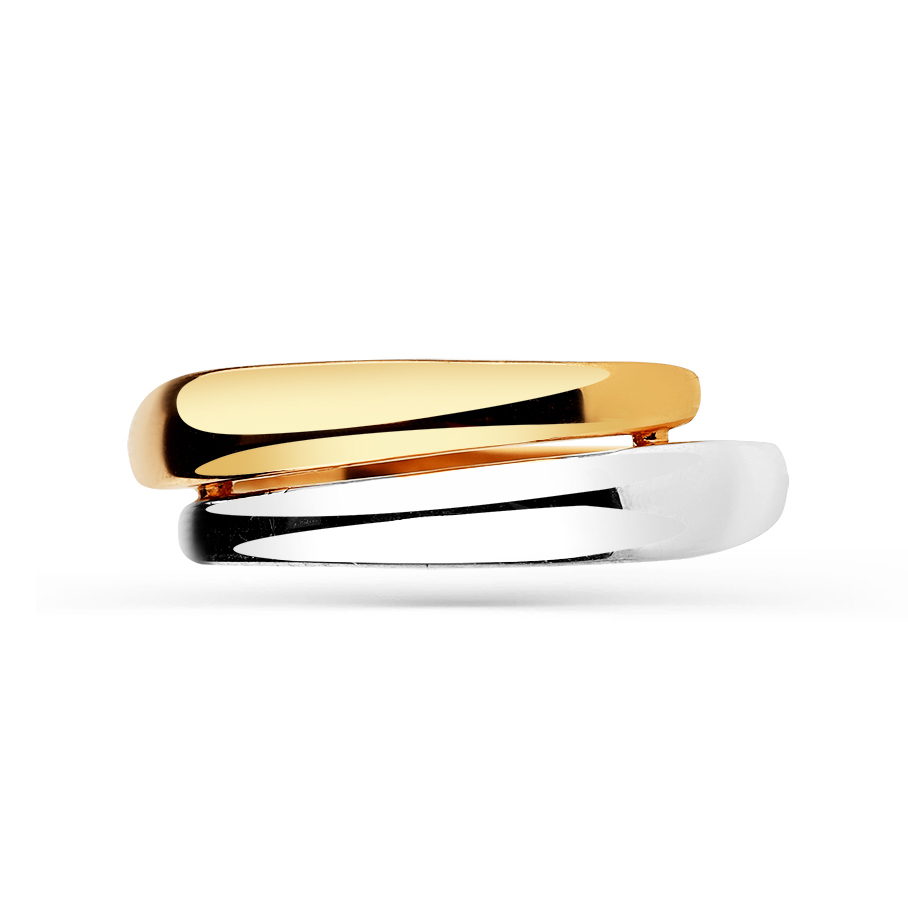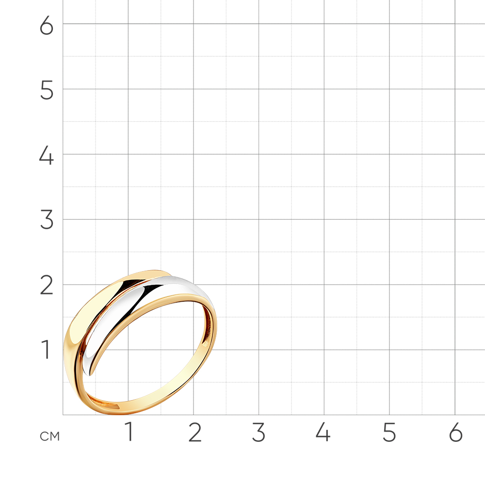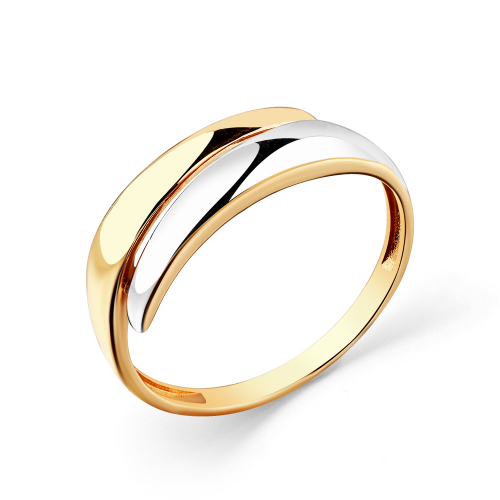 Стильное кольцо оригинального дизайна выполнено в сочетании красного и белого золота 585 пробы