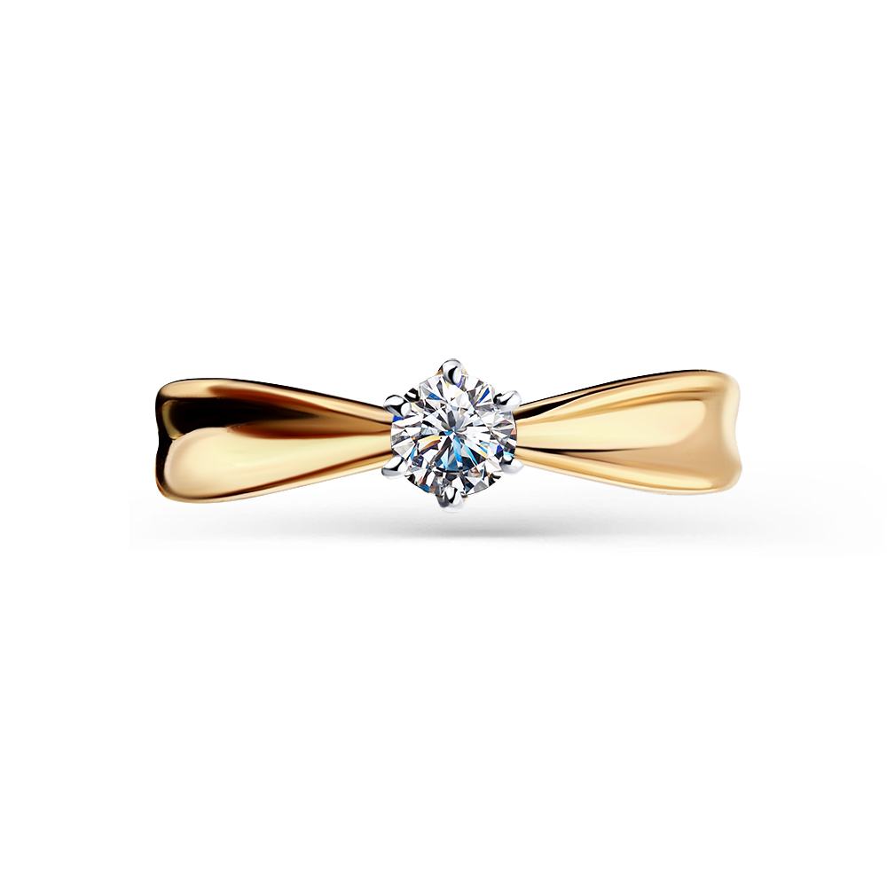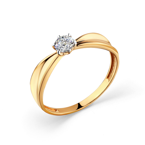 Лаконичное кольцо классического дизайна выполнено в красном золоте 585 пробы, украшенное ярким фианитом
