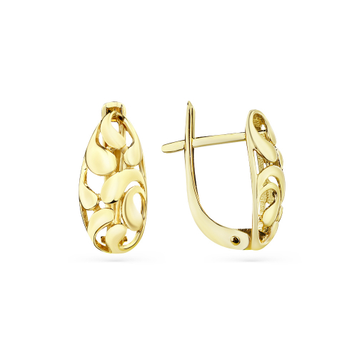 Стильные объемные серьги выполнены из желтого золота 585 пробы
