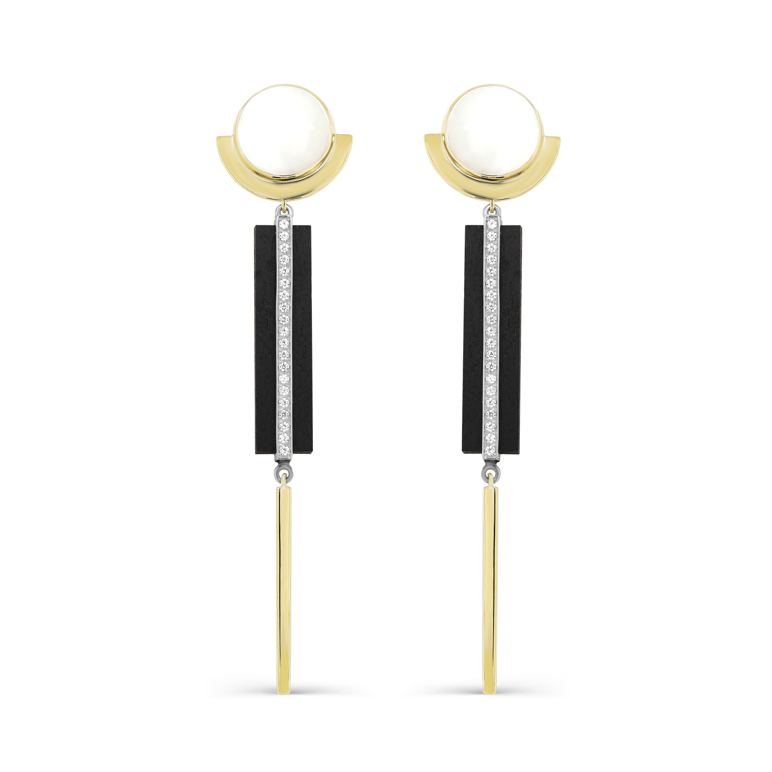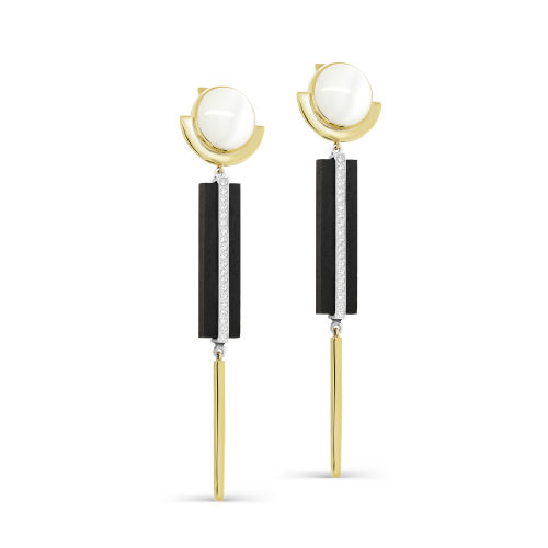 Нежные серьги с ярким контрастным дизайном, украшенные перламутром и дорожками фианитов, выполнены из позолоченного серебра 925 пробы. Тип замка - английский, самый надежный и удобный. Изделие представлено брендом "KABAROVSKY". Средняя характеристика камней на артикул: 2 Перламутр КрКб 12,00; 40 Фианит Кр 1,25; 2 Дерево Граб; В комплект поставки входит: