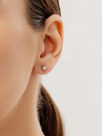 Серьги-пусеты с сверкающими бриллиантами, выполнены из красного золота 585 пробы. Изящная закрепка пропускает свет со всех сторон, тем самым раскрывая глубокий цвет, игру и блеск камня. Тип замка - винтовой, надежный и удобный. Изделие представлено брендом Алькор.