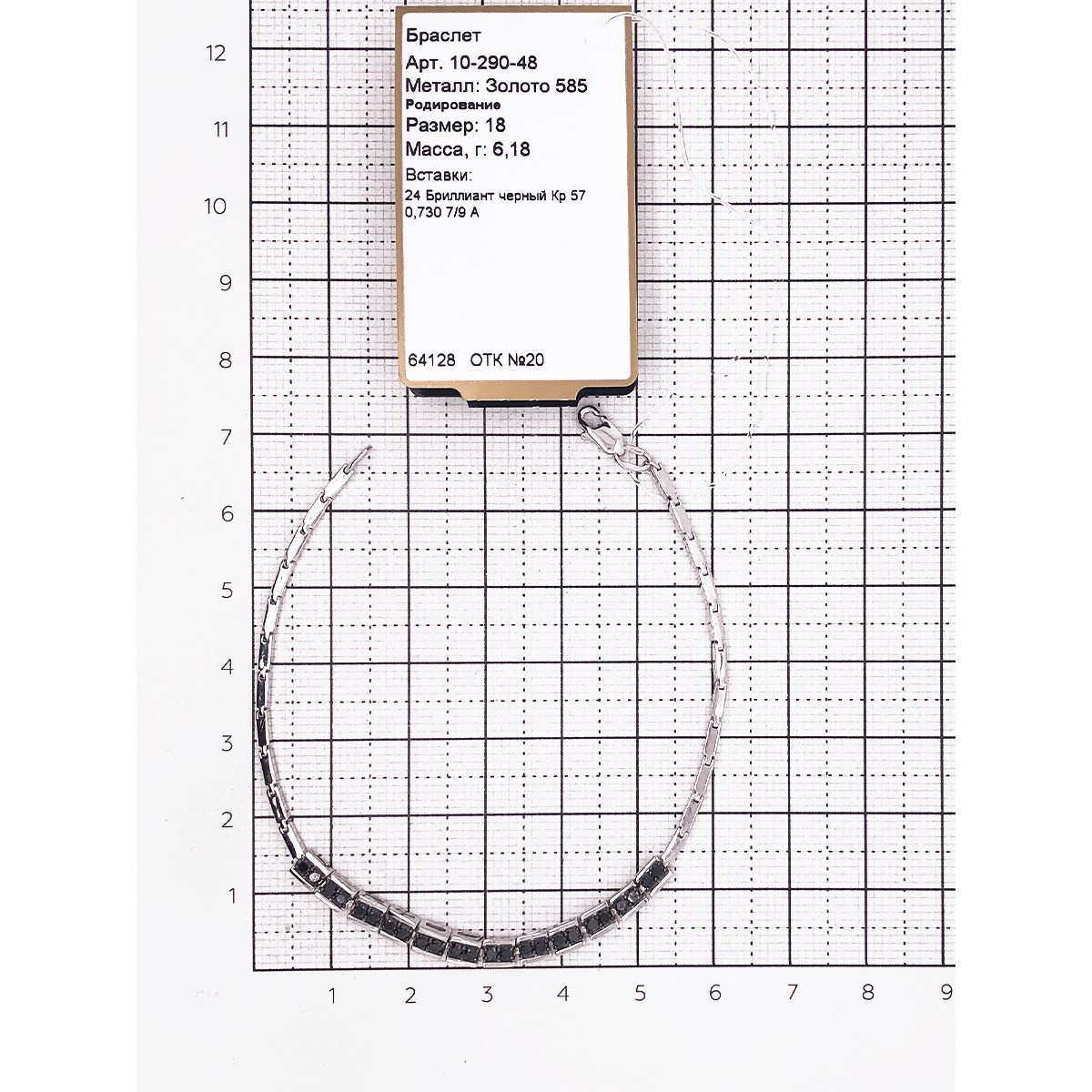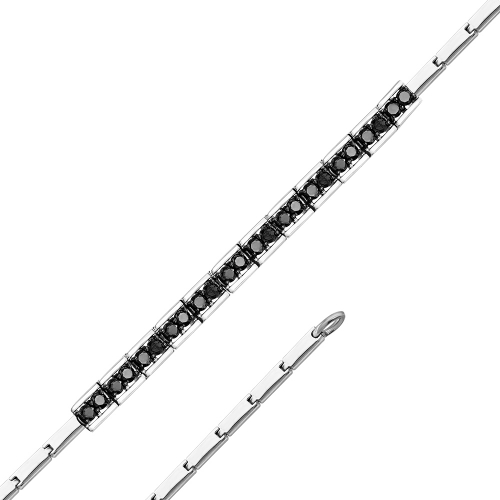 Браслет с изящными звеньями прямойгольной формы, украшенными чёрными бриллиантами, выполнен из белого золота 585 пробы
