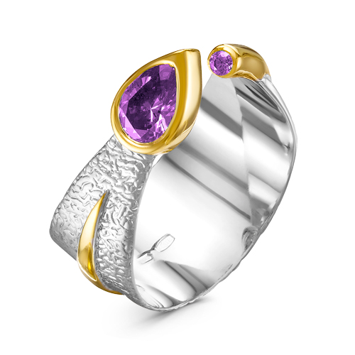 Блеск камней, серебра с позолотой и изящность формы – такое кольцо создано, чтобы притягивать взгляды
