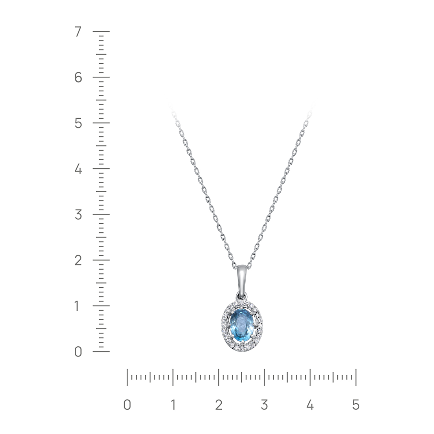 Элегантное цепочное колье с подвеской, украшенной голубым цирконом, в окружении сверкающих фианитов, выполнено из серебра 925 пробы