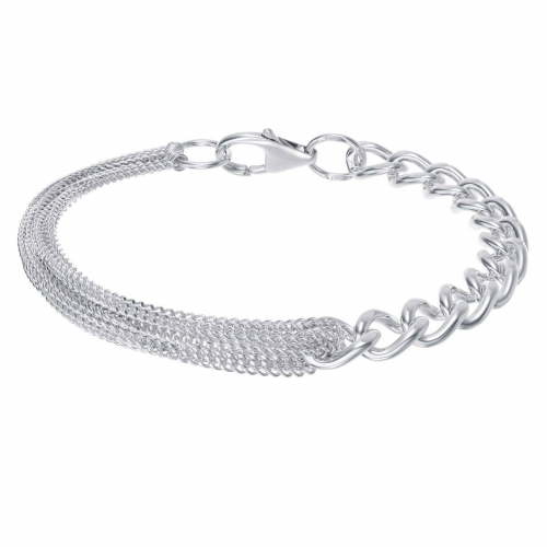 Многослойный цепочный браслет, где сочетание мелкого и крупного мелкого и крупного якорных плетений, выполнен из родированного серебра 925 пробы