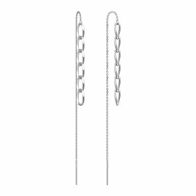 Современные серьги-протяжки с акцентом на панцирное плетения выполнены из серебра 925 пробы и покрыты родием, который защищает украшение от внешних воздействий и долго сохраняет первоначальный внешний вид