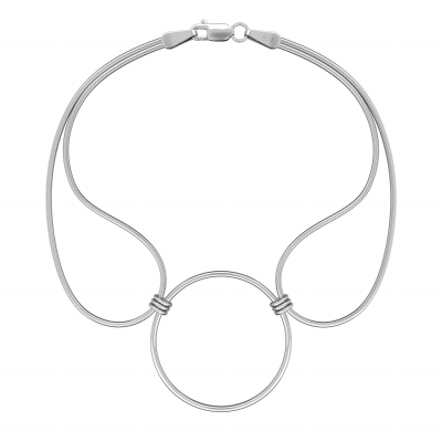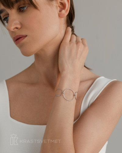 Стильный двойной браслет с декоративной вставкой в виде кольца выполнен из серебра 925 пробы