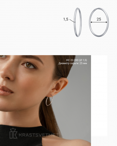 Классические серьги - кольца, легкие и удобные в использовании, что делает их идеальными для повседневной носки выполнены из серебра 925 пробы