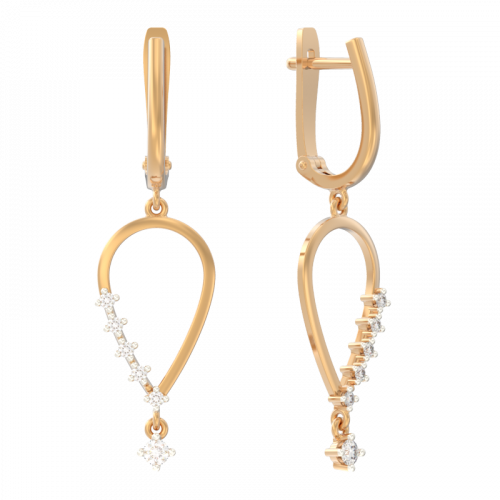 Стильные длинные серьги выполнены в сочетании красного и белого золота 585 пробы, украшены сверкающими фианитами