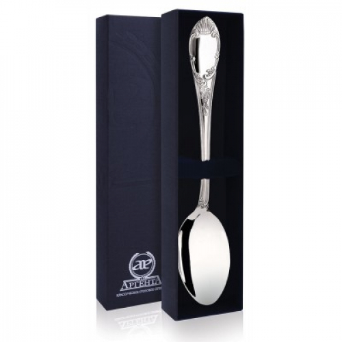 Столовая ложка из коллекции "Перестиж" изготовлена из серебра 925 пробы без примесей посторонних металлов и без применения гальванического покрытия