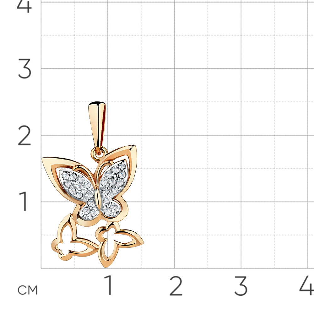 Изящная подвеска в виде порхающих бабочек выполнена с сочетанием красного и белого золота 585 пробы