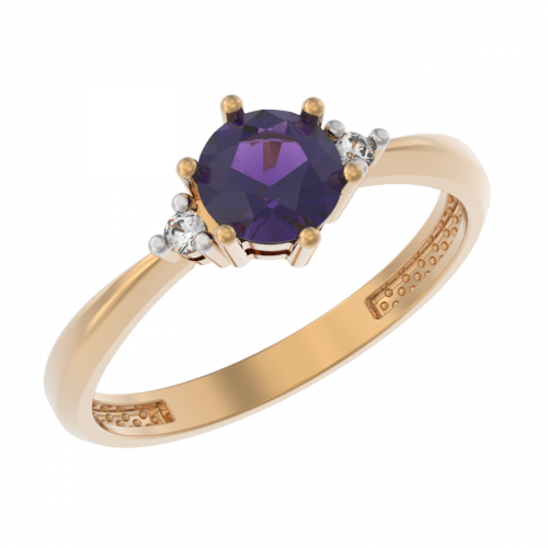 Кольцо, красное золото, аметист, проба 585
