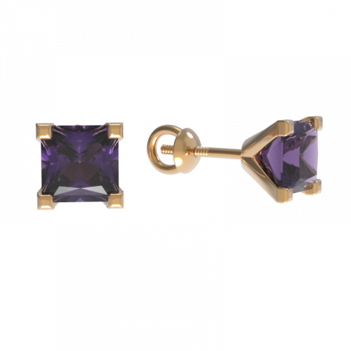 Яркие серьги-пусеты с аметистами выполнены в красном золоте 585 пробы
