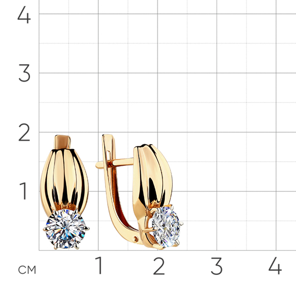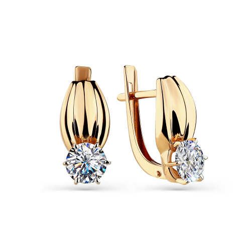 Серьги классического дизайна с крупным фианитом выполнены из красного золота 585 пробы