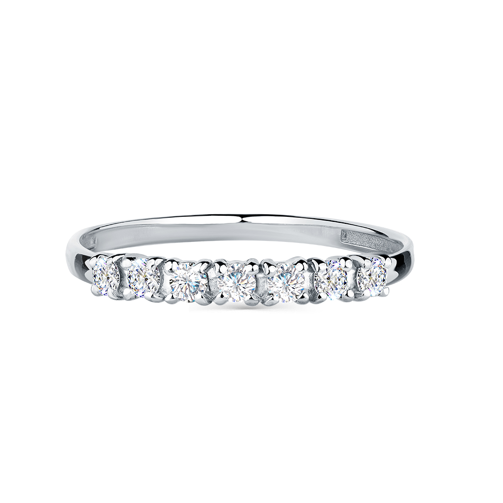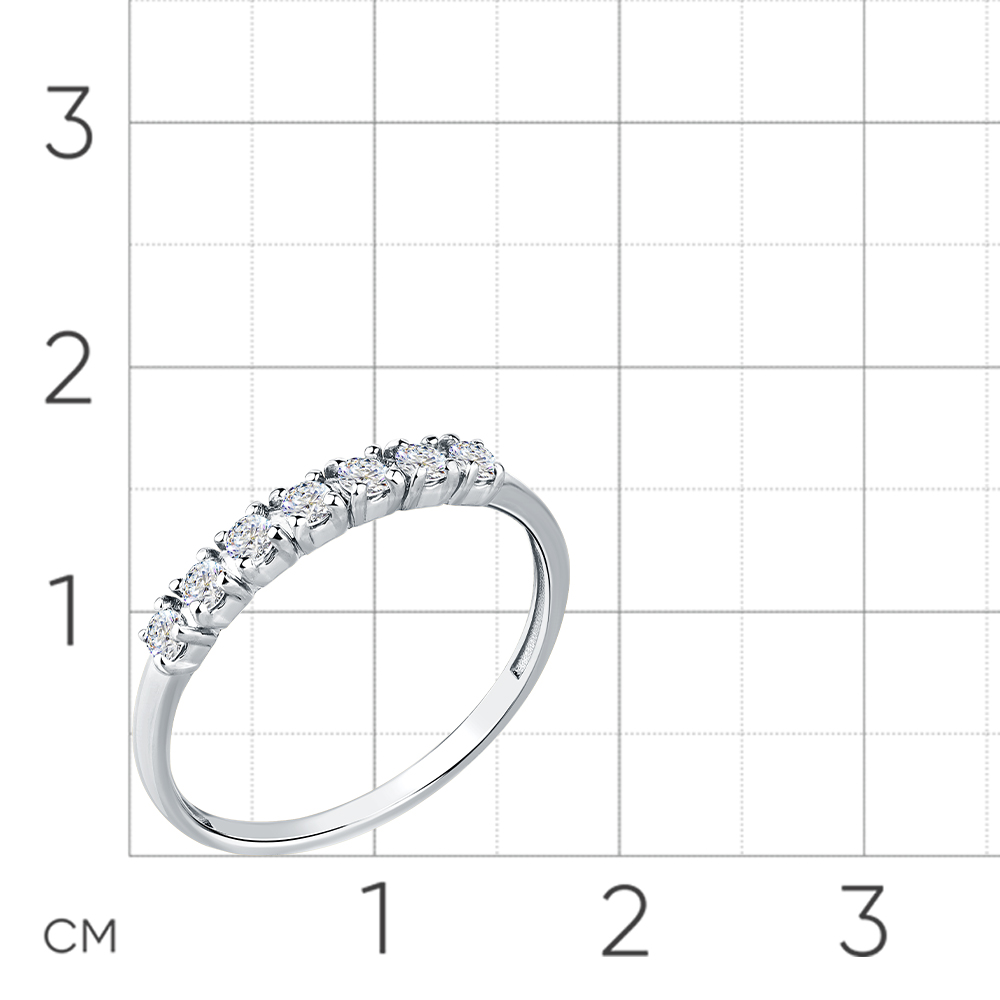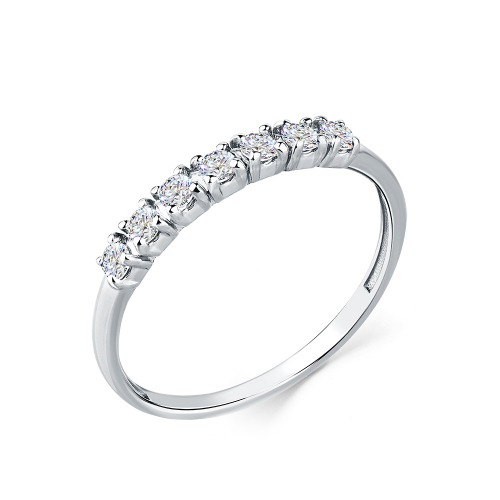 Изящное кольцо, украшенное дорожкой фианитов, выполнено из белого золота 585 пробы