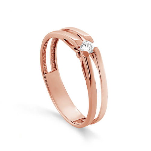 Стильное помолвочное кольцо из красного золота 585 пробы с одиночным ярким бриллиантом